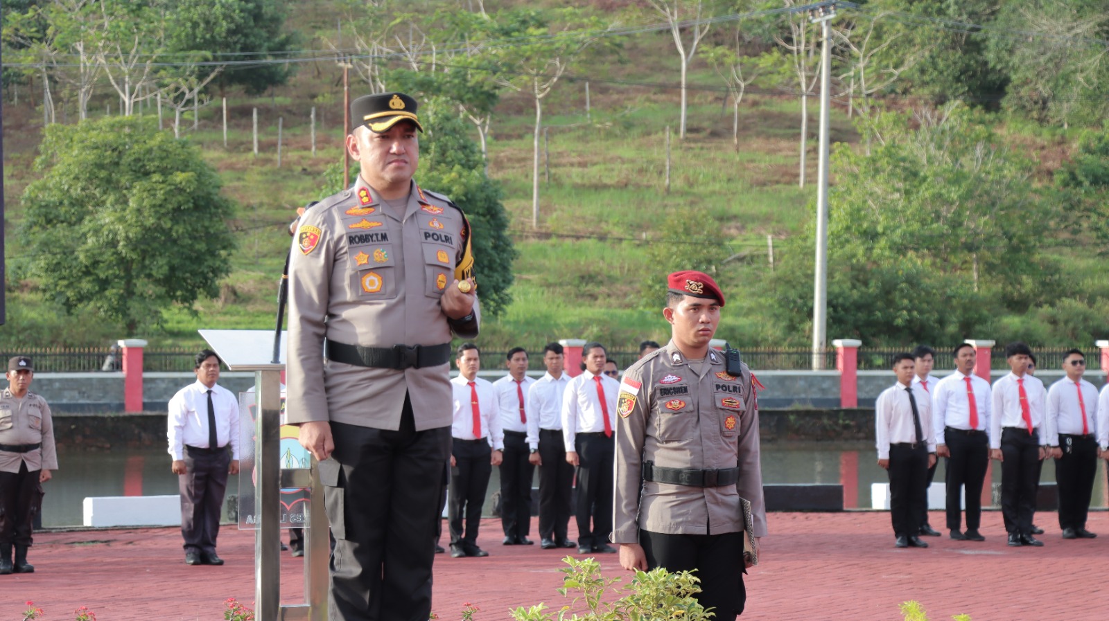 Upacara yang mengusung tema “Bangkit untuk Indonesia emas ” berlangsung di halaman Mapolres diikuti seluruh personel Polres Lingga dan Polsek jajaran.