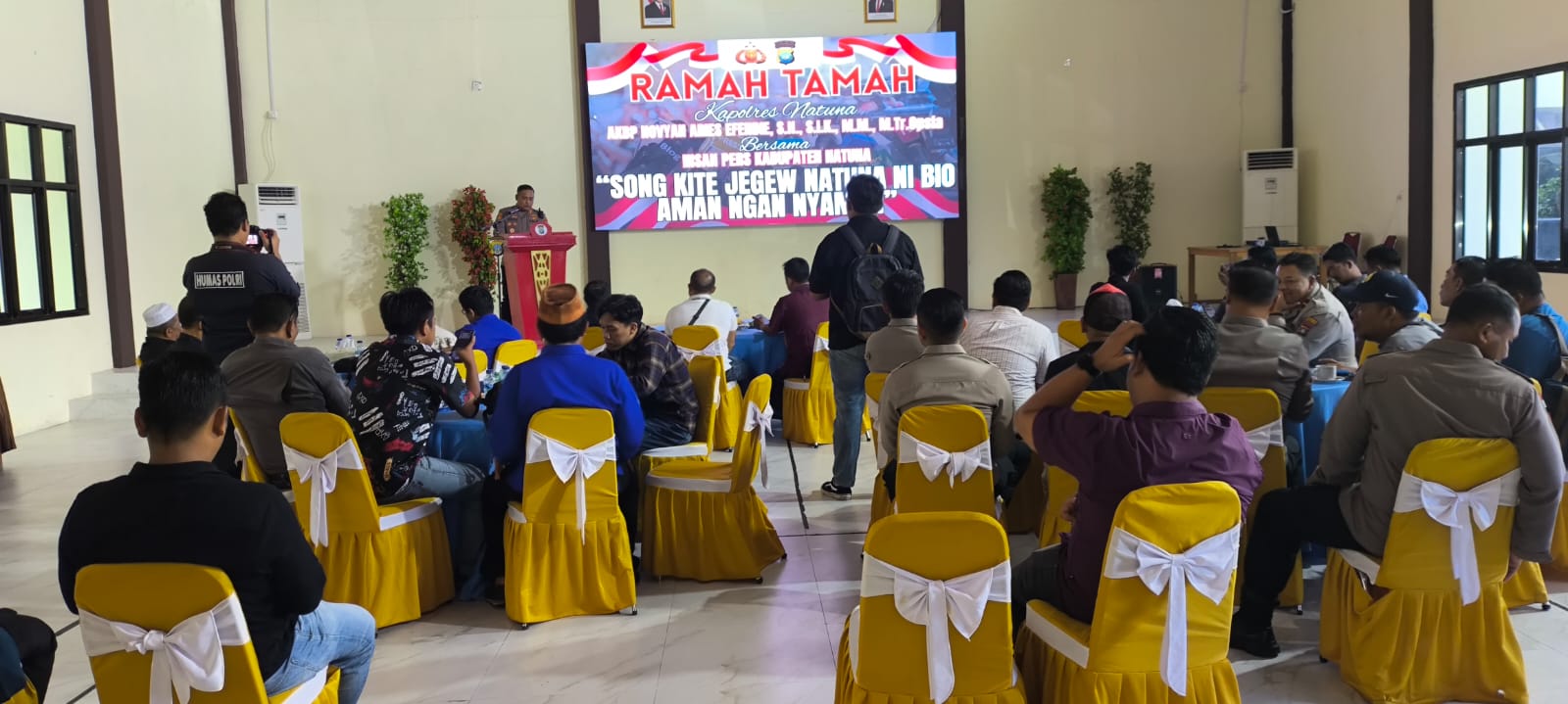 Natuna – Kehangatan dan kebersamaan tampak begitu kental saat Kapolres Natuna, AKBP Novyan Aries Efendie SH., S.I.K., M.M. menggelar ramah tamah bersama insan pers di Aula Mapolres Natuna, Air Mulung, Ranai, Selasa (09/09/2025).