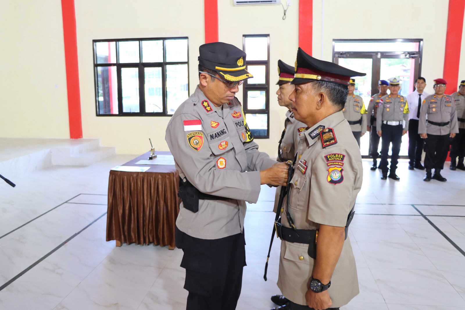 Bursakota.co.id, Natuna – Kepala Kepolisian Resor (Kapolres) Natuna, AKBP Nanang Budi Santosa, S.I.K pimpin upacara serah terima jabatan (Sertijab) Kabagops dan Kasipropam.
