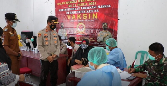 Bursakota.co.id, Natuna – Kapolres Natuna, AKBP Ike krisnadian S.I.K M.Si laksanakan peninjauan pelaksanaan vaksinasi di Balai Desa Sungai Ulu Kecamatan Bunguran Timur, Senin siang (21/06/2021)