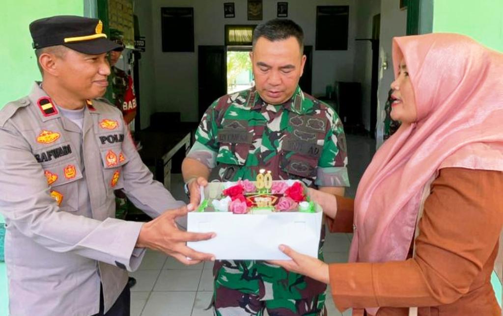 Aceh Timur – Dalam rangka memperingati HUT Ke – 80 Tentara Nasional Indonesia (TNI), Kapolsek Simpang Jernih, Polres Aceh Timur, Polda Aceh, Ipda Safwadinur, S.H.,M.H. bersama Pj. Camat Simpang Jernih Cut Sri Wahyuni, S.E mengunjungi Koramil 10/SPJ Kodim 0104/ATIM dengan membawa tumpeng dan ulang tahun HUT Ke – 80 Tahun 2025, Senin, (06/10/2024) siang.