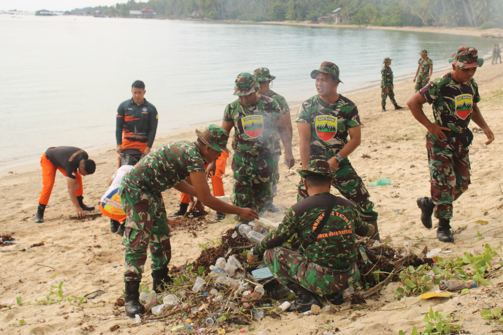 Bursakota.co.id, Natuna – Komando Distrik Militer (Kodim) 0318/ Natuna bersinergi bersama Pemerintah Daerah, TNI-Polri, Basarnas dan masyarakat Kabupaten Natuna melaksanakan kegiatan Karya Bakti pembersihan pantai.