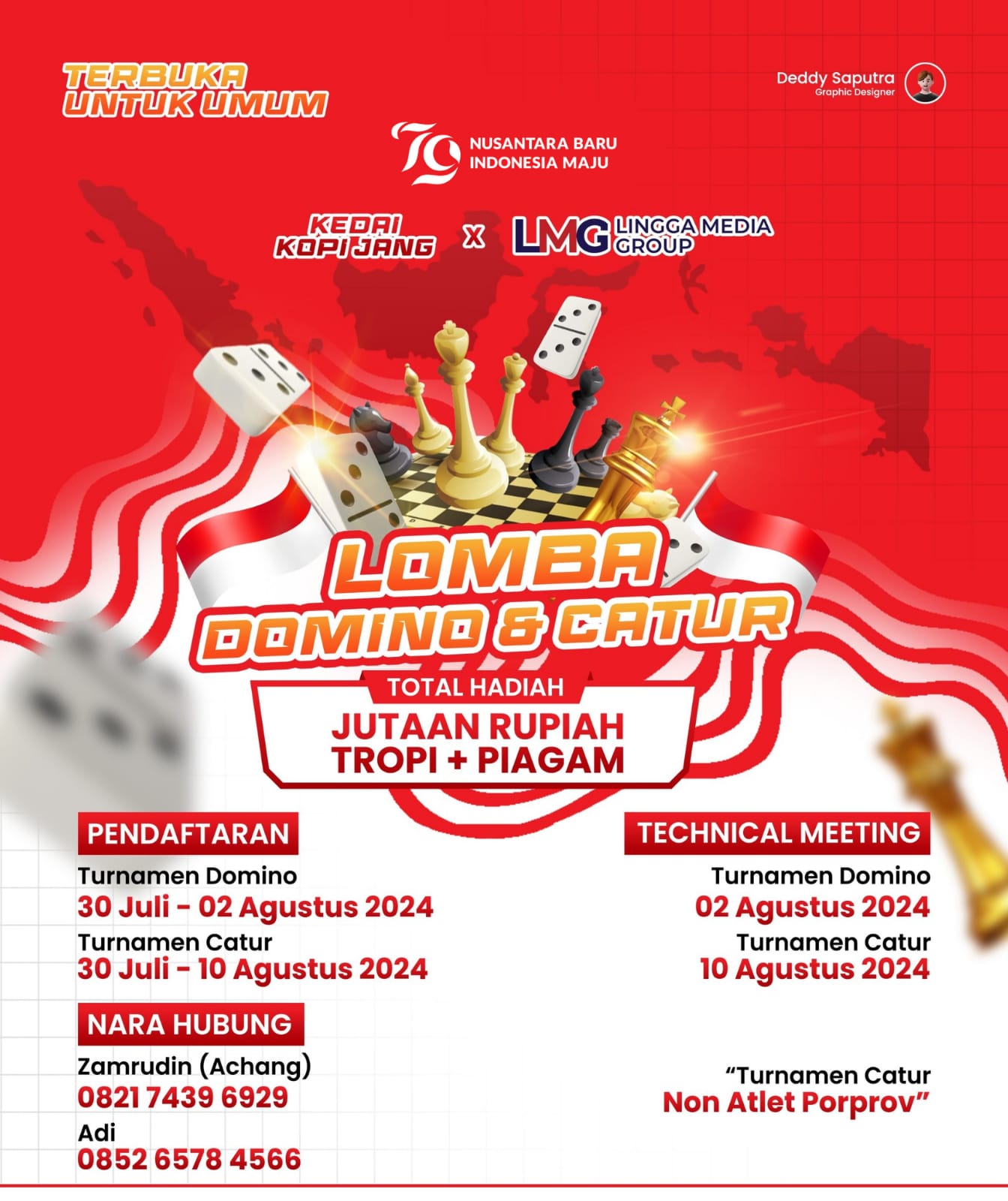 Lingga – Dalam rangka memeriahkan Hari Ulang Tahun ke-79 Negara Kesatuan Republik Indonesia (NKRI), Kedai Kopi Jang bersama Komunitas Lingga Media Group (LMG) menyelenggarakan turnamen domino dan catur.