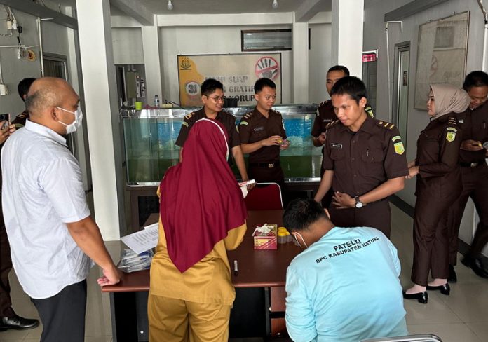 Kepala Kejaksaan Negeri Natuna, Surayadi Sembiring, S.H., M.H., mengumpulkan seluruh jaksa, PNS staf tata usaha, CPNS, PPNPN, dan PTT dalam satu ruangan untuk menjalani pemeriksaan tersebut.