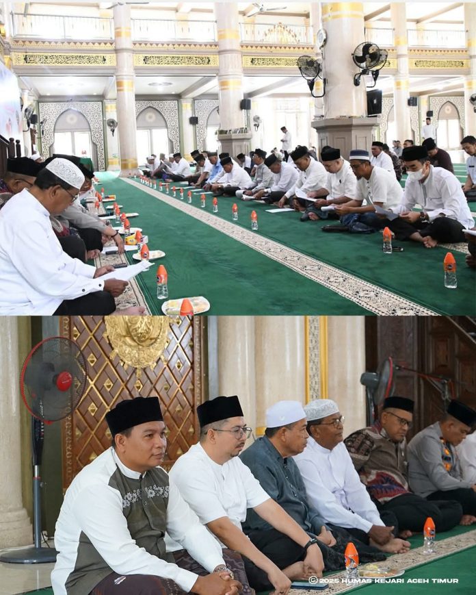 Aceh Timur – Kepala Kejaksaan Negeri (Kejari) Aceh Timur yang diwakili oleh Kepala Sub Bagian Pembinaan, Rizky Fauzi, S.H., M.H., menghadiri kegiatan Zikir dan Tausiah dalam rangka memperingati dua dekade Hari Damai Aceh ke-20, Jumat (15/8/2025).