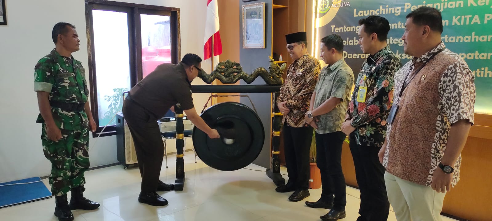 Natuna – Kejaksaan Negeri Natuna secara resmi melaksanakan Launching Perjanjian Kerja Sama (PKS) tentang Pembentukan Tim KITA PENDEKAR KMP (Kolaborasi Integrasi Pertanahan, Pemerintah Daerah, Kejaksaan Percepatan Sertifikat Koperasi Merah Putih) pada Kamis (19/02/2026) bertempat di Aula Kejaksaan Negeri Natuna.