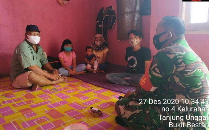 Saat ini diwilayah binaannya, Sertu MS Manurung mendapati adanya keluarga yang terlantar dan menumpang disalah satu rumah warga di Kelurahan Tanjung Unggat, Minggu (27/12/2020)