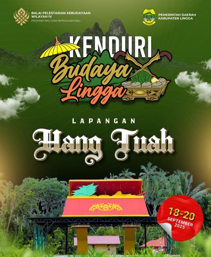 Lingga – Balai Pelestarian Kebudayaan Wilayah IV Provinsi Riau dan Kepri bekerja sama dengan Pemerintah Kabupaten Lingga akan menggelar “Kenduri Budaya Lingga 2025” pada 18–20 September mendatang di Lapangan Hang Tuah, Daik Lingga.