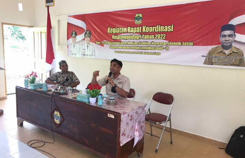 Bursakota.co.id, Lingga – Kesbangpol Lingga gelar rapat koordinasi dengan tema Peran Masyarakat Dalam Menjaga Stabilitas Keamanan, Sosial, Ekonomi, Budaya, Agama pasca Pemulihan Covid 19 di Kabupaten Lingga Tahun 2022 bertempat di Pantai 3 Beradik Tanjung Sawang Desa Lanjut, Kecamatan Singkep Pesisir, Kamis (21/07/2022).