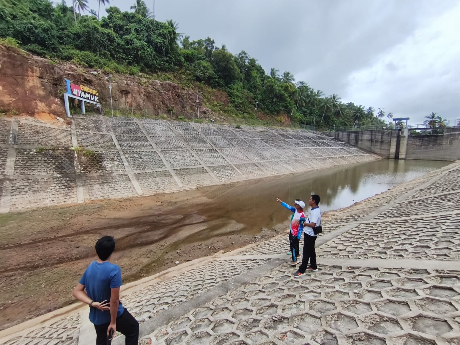 Peninjauan tersebut dilakukan pada embung yang dikelola pemerintah Desa Nyamuk serta embung yang dibangun oleh pemerintah pusat melalui program Penyediaan Air Minum dan Sanitasi Berbasis Masyarakat (SPAMSIMAS).