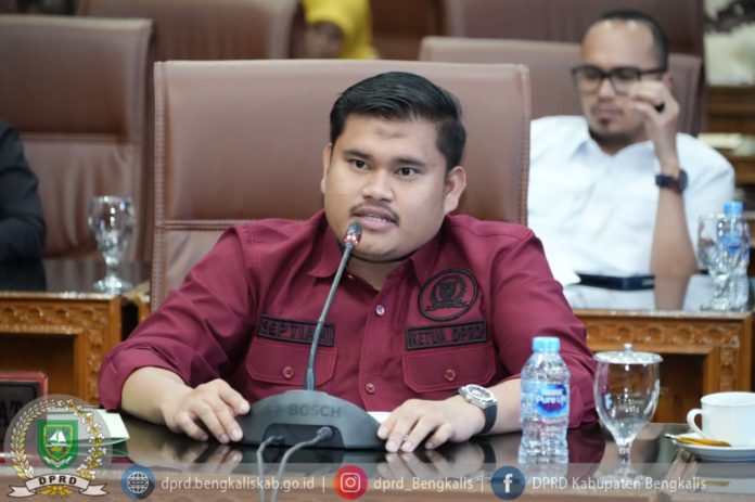 Bengkalis, Humas DPRD – Ketua Dewan Perwakilan Rakyat Daerah (DPRD) Kabupaten Bengkalis, Septian Nugraha, S.E., M.IP mengimbau seluruh masyarakat dan stakeholder terkait agar lebih waspada dan aktif mencegah terjadinya Kebakaran Hutan dan Lahan (Karhutla), khususnya di musim kemarau yang rawan terjadi saat ini.