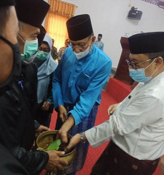 Bursakota.co.id, Natuna – Adat istiadat tepung tawar menjadi pembuka Paripurna istimewa DPRD Kabupaten Natuna dengan agenda penyampaian pidato Bupati Natuna dalam rangka Hari Jadi Kabupaten Natuna ke-21 tahun 2020 di ruang Rapat Paripurna DPRD, Jalan Yos Sudarso, Ranai, Pada Senin (12/10).