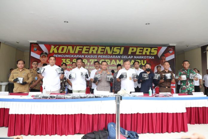 Dalam Press Release yang dipimpin langsung Kapolresta Barelang, Kombes Pol Nugroho Tri Nuryanto, terungkap kasus peredaran gelap narkotika berupa 35.949,71 gram sabu dan pemusnahan narkotika jenis sabu 36.000,4 gram berupa benda sitaan ataubarang bukti narkotika.