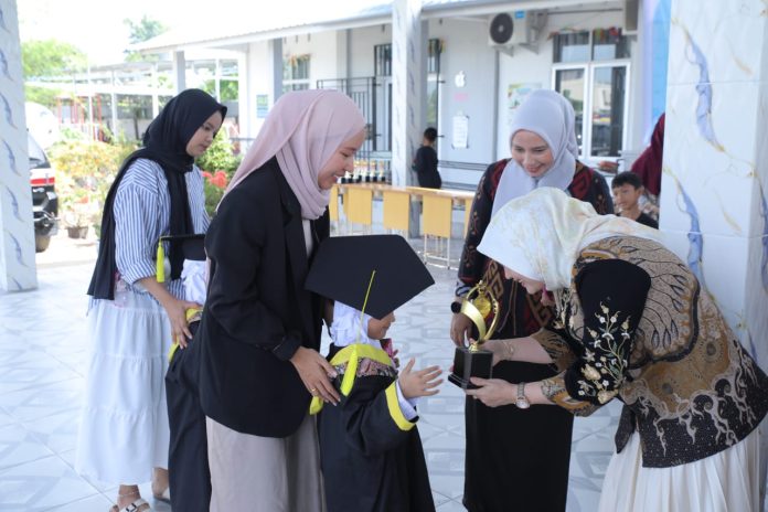 Bursakota.co.id,Asahan – Ketua TP PKK Kabupaten Asahan Ny. Yusnila Indriati Taufik Zainal Abidin menghadiri Perpisahan/Pelepasan Peserta Didik Taman Kanak (TK) B TK Swasta Darussalam Islamic School (DIS) Kisaran Tahun Pelajaran (TP) 2024-2025 di Halaman TK Swasta DIS Kisaran, Kamis (12/06/2025).