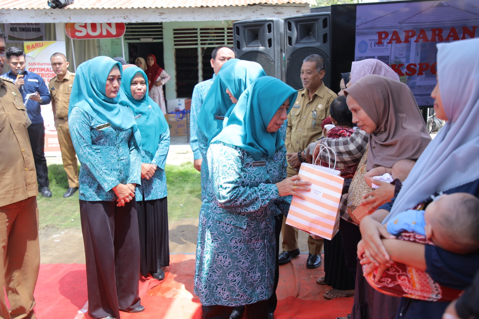 Suasana dalam Pilot Project hari ini para kader PKK terlihat sangat semangat dari mulai penyampaian ekspos oleh Ketua TP – PKK Desa Piasa Ulu Iriani dan Ketua TP – PKK Kecamatan Setia Janji Rani Saftareyna, Ketua TP – PKK Kabupaten Asahan juga terlihat memberikan bingkisan serta makanan tambahan kepada Ibu dan bayi secara simbolis.(Rik)