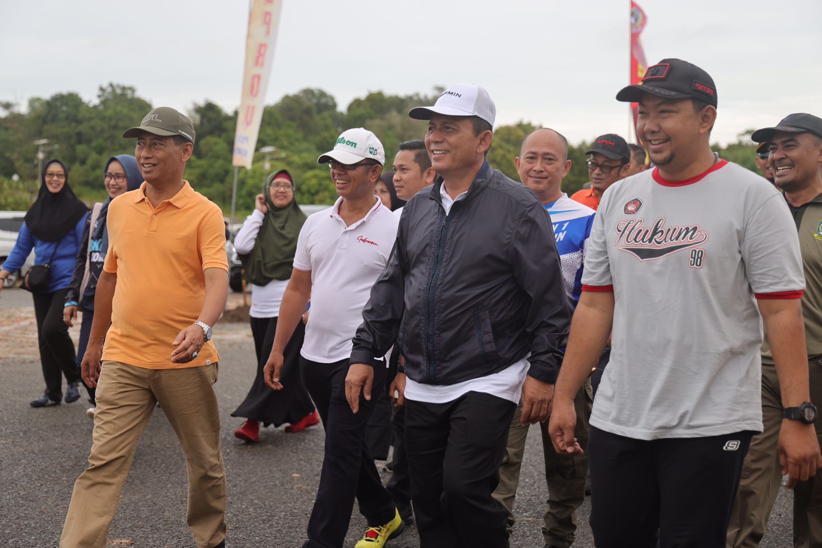 Gubernur Kepri Ansar Ahmad, didampingi Sekdaprov Adi Prihantara, Kepala OPD, dan pegawai Pemerintah Provinsi Kepri, memulai rangkaian acara dengan Jalan Santai dari Portal Masuk Perkantoran Pemprov hingga ke Stadion Gelora Sri Tri Buana.