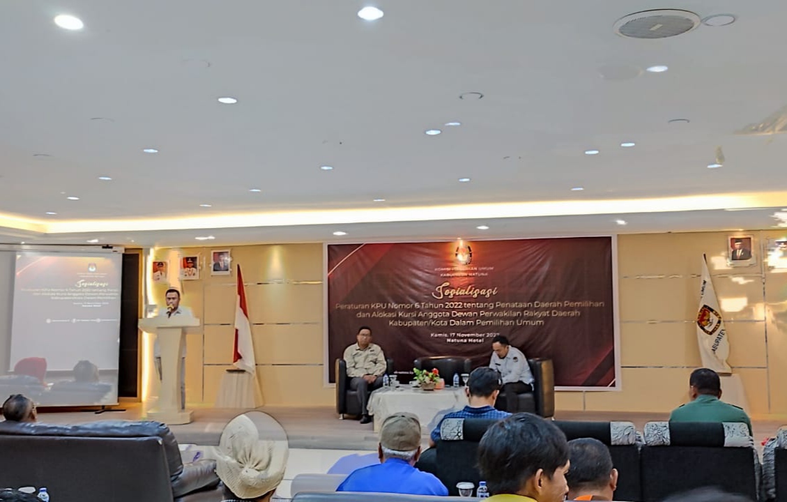 Bursakota.co.id, Natuna – Memasuki tahapan Penataan Daerah Pemilihan dan Alokasi Kursi DPRD Kabupaten/Kota dalam Pemilihan Umum. Komisi Pemilihan Umum (KPU) Kabupaten Natuna gelar Sosialisasi Peraturan KPU Nomor 6 Tahun 2022.