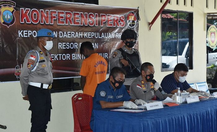 Kapolres Bintan AKBP Tidar Wulung Dahono,S.H.,S.I.K.,M.H. menjelaskan melalui Kapolsek Bintan Timur AKP Suardi,S.E. Dalam konferensi pers yang digelar di Mapolsek Bintan Timur Sabtu (23/04/2022),