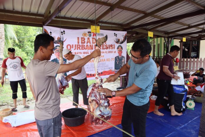 Penyembelihan hewan qurban dengan tema “Melalui Ibadah Qurban Kita Tingkatkan Taqwa Menuju Polri Yang Presisi” yang dilaksanakan di Mapolres Natuna, Kamis (29/06/2023).