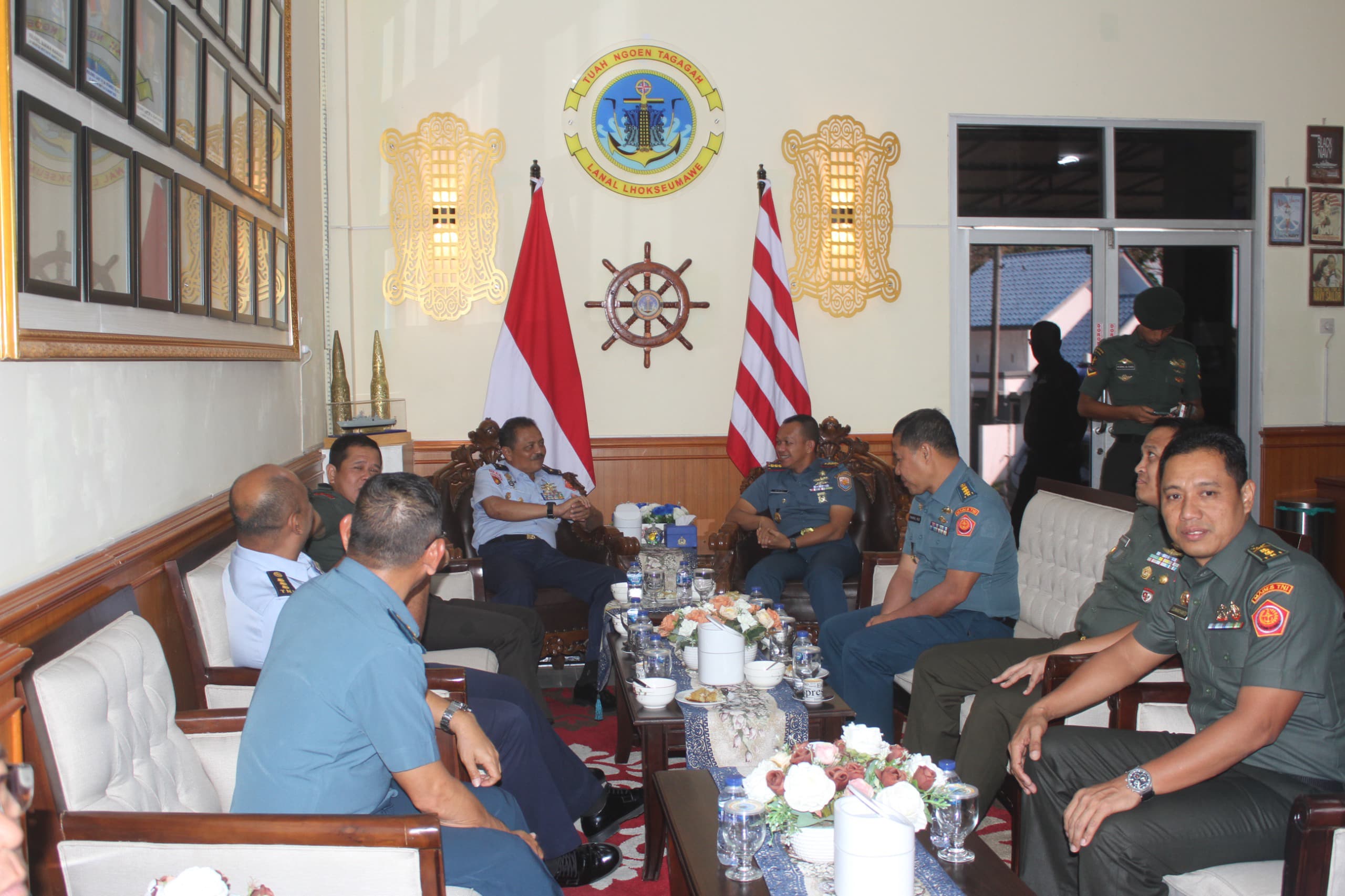 Bursakota.co.id, Lhokseumawe – Komandan Pangkalan TNI AL (Lanal) Lhokseumawe Kolonel Laut (P) Andi Susanto menerima Pengendali Teknis Tim Audit Kinerja Itjen TNI Marsekal Pertama TNI Ridwan Djoko Leksono, S.E., C.Fr.A, beserta anggota im Audit di Mako Lanal Lhokseumawe, Kamis (22/2/2024).