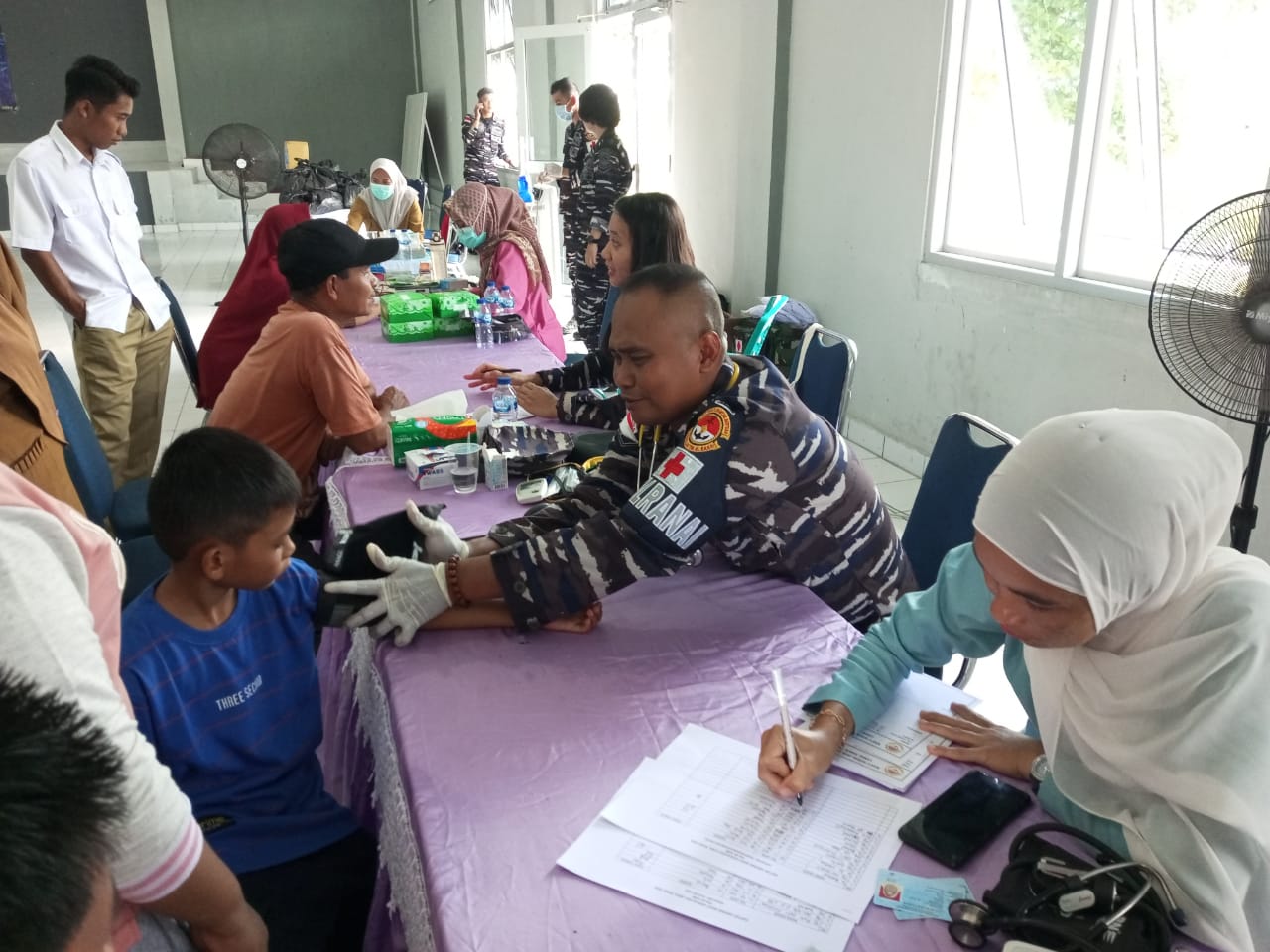 Sebanyak 11 anak mengikuti khitanan, sementara puluhan warga lainnya antusias memanfaatkan layanan kesehatan gratis yang disediakan oleh tim gabungan dari Balai Pengobatan Lanal Ranai dan tenaga medis Puskesmas.
