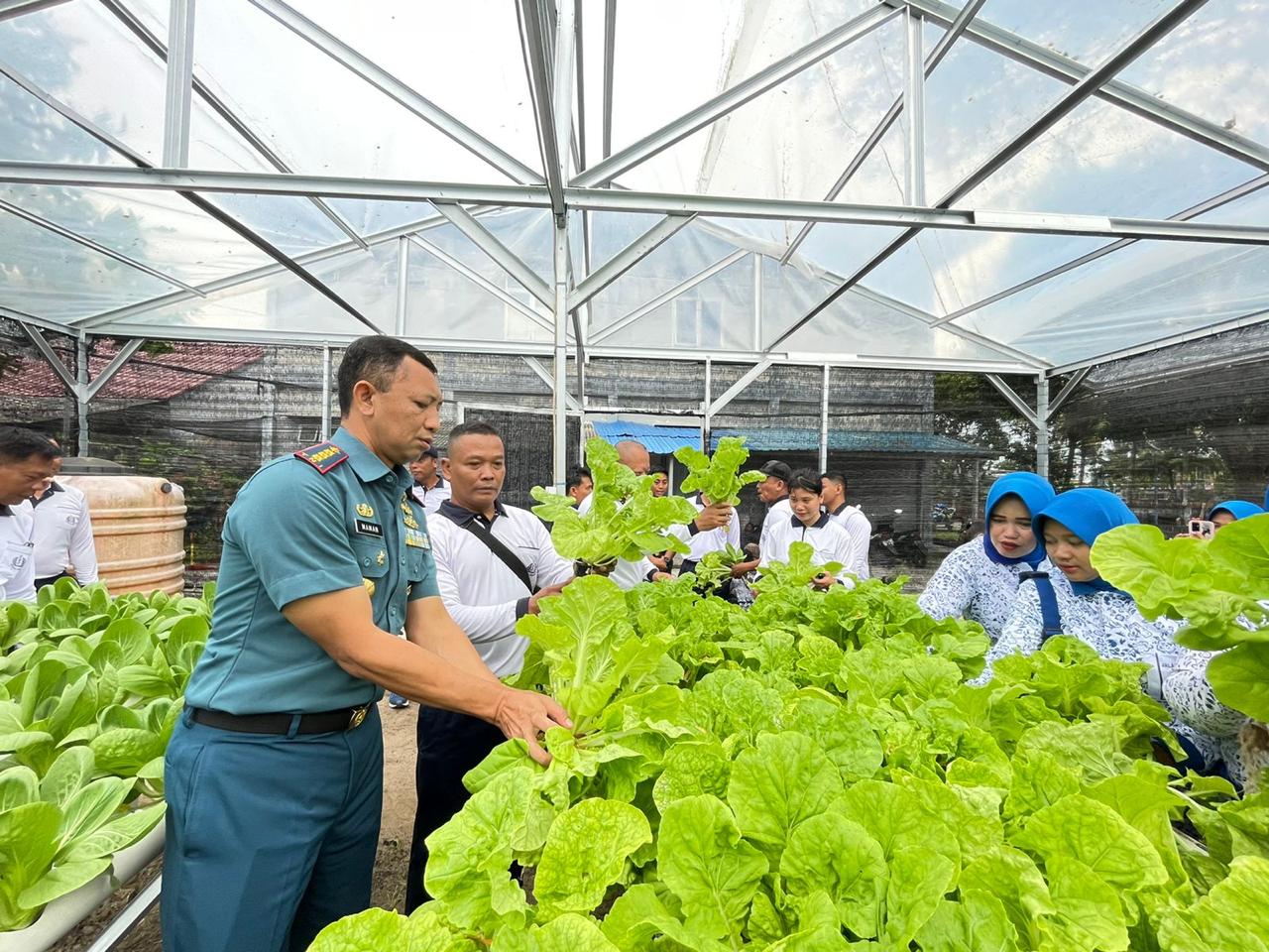 Bursakota.co.id, Natuna – Komandan Pangkalan TNI Angkatan Laut (Lanal) Ranai Kolonel Laut (P) Maman Nurachman beserta Perwira Staf dan anggota Jalasenastri Cabang 8 Korcab IV DJA I melaksanakan panen sayur di kebun hidroponik yang ditanam di lahan ketahanan pangan komplek rumah dinas Lanal Ranai. Jl. Yos Sudarso Kelurahan Batu Hitam Kecamatan Bunguran Timur Kab.Natuna Provinsi Kepulauan Riau, Selasa (13/02/2024)