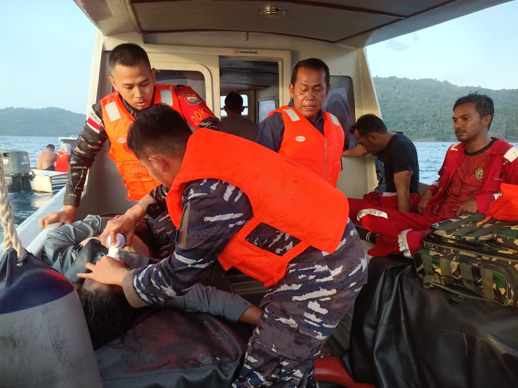 Sementara itu, Ka BP Lanal Tarempa bersama Bakes berjibaku melaksanakan penanganan pertama dari proses evakuasi korban di laut hingga dievakuai ke RSUD Tarempa.