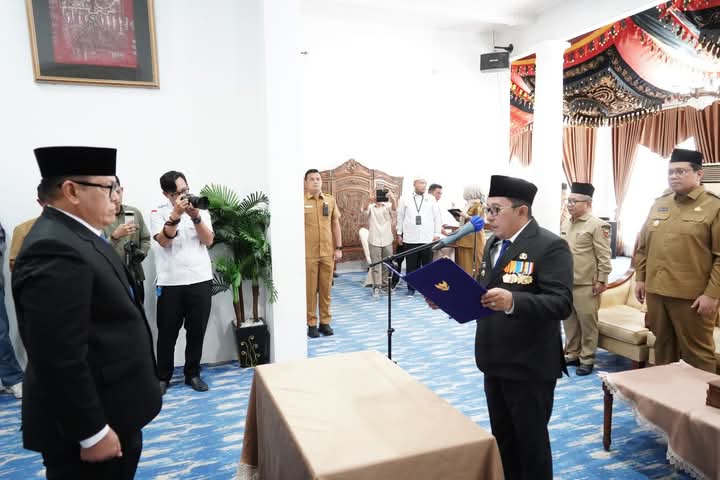 Ket Foto : Bupati Tanah Datar, Eka Putra, SE., M.M, resmi melantik Elizar, SH sebagai Penjabat Sekretaris Daerah (Pj Sekda) Kabupaten Tanah Datar, di Gedung Indo Jolito Batusangkar, Senin (3/3/2025).