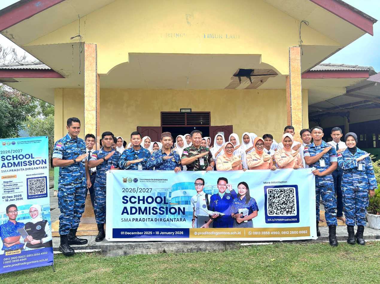Natuna – Tim Sosialisasi SMA Pradita Dirgantara, dipimpin Kepala Dinas Personel (Kadispers) Lanud Raden Sadjad (Lanud RSA) Letkol Adm Yuli Afrizan, S.Sos., bersama Yasarini Pengurus Cabang Lanud RSA, mengunjungi SMPN 1 Bunguran Timur Laut, Kabupaten Natuna, Provinsi Kepulauan Riau, Senin (17/11/2025).