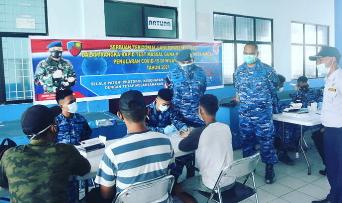 Bursakota.co.id, Natuna – Lanud Raden Sadjad(RSA) menggelar serbuan teritorial rapid massal test gratis kepada buruh di Pelabuhan kapal Penagi, Kelurahan Batu Hitam, Kecamatan Bunguran Timur, Kabupaten Natuna, Selasa(2/3/2021).