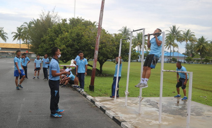 “Kesamaptaan jasmani ini dilaksanakan setiap 6 bulan sekali, lakukan yang terbaik walaupun kita di pulau terdepan yang jauh dari ibukota tunjukan semangat sebagai prajurit di garda terdapan”, tegas Kasibinjaskemil.