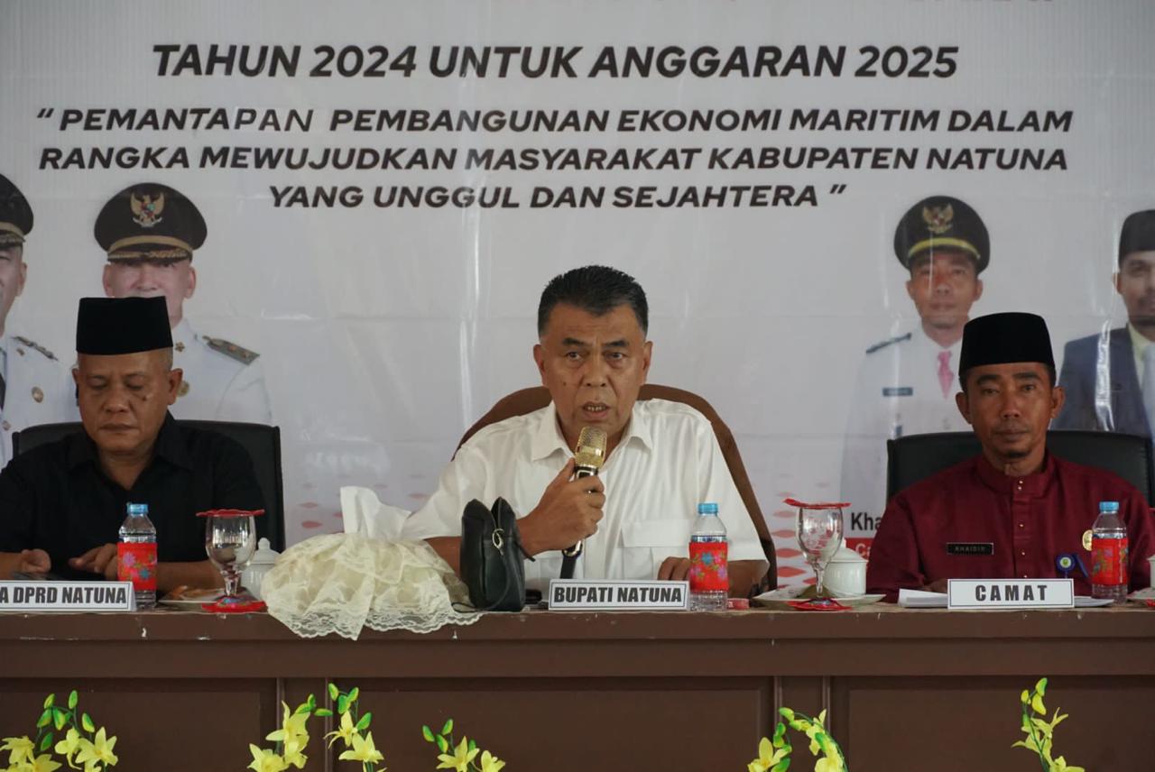 Bursakota.co.id, Natuna – Bupati Natuna, Wan Siswandi kembali melakukan rangkaian kegiatan Musyawarah perencanaan pembangunan (Musrenbang) kali ini di Kecamatan Bunguran Barat di Kelurahan Sedanau, Jum’at (26/01).