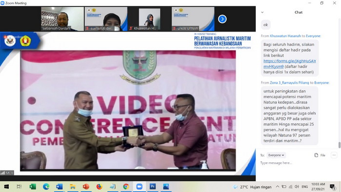 Pada acara pembukaan in House Jurnalistik Maritim Berwawasan Nusantara yang digelar antara kerjasama UPN Veteran Yogyakarta dengan kedubes AS di Natuna, Senin (27/09/2021) lalu, Rektor UPN Veteran Yogyakarta Dr. Irhas Effendi mengatakan, banyak negara memiliki kepentingan untuk menjaga kedaulatannya. Hanya saja persoalan maritim ini kerap dipandang semata-mata persoalan ekologi, politik, keamanan dan sosial.