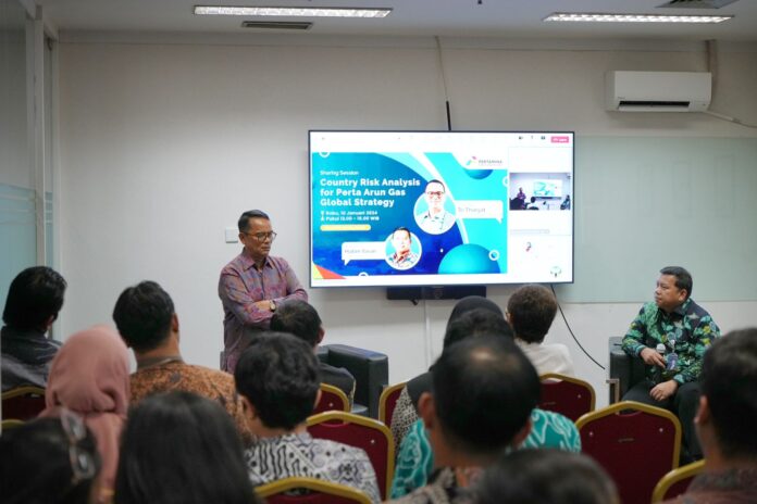Bursakota.co.id. Lhokseumawe – PT Perta Arun Gas (PAG) menggelar sharing session bertema “Country Risk Analysis for Perta Arun Gas Global Strategy dalam rangka evaluasi kinerja perusahaan di Tahun 2023 serta guna meningkatkan awareness seluruh perwira dalam pengelolaan resiko.