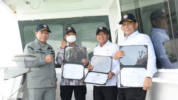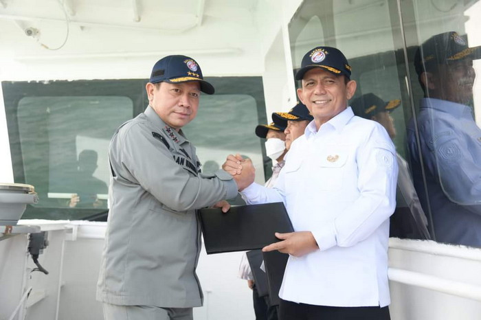 Batam – Menteri Dalam Negeri (Mendagri) Muhammad Tito Karnavian, bersama Gubernur Kepulauan Riau H. Ansar Ahmad serta jajaran Kepala Forum Koordinasi Pimpinan Daerah (FKPD) beserta rombongan meninjau pulau Karang Singa menggunakan kapal KN. Nipah melalui pelabuhan Batu Ampar, Batam, Kamis (13/1/2022).
