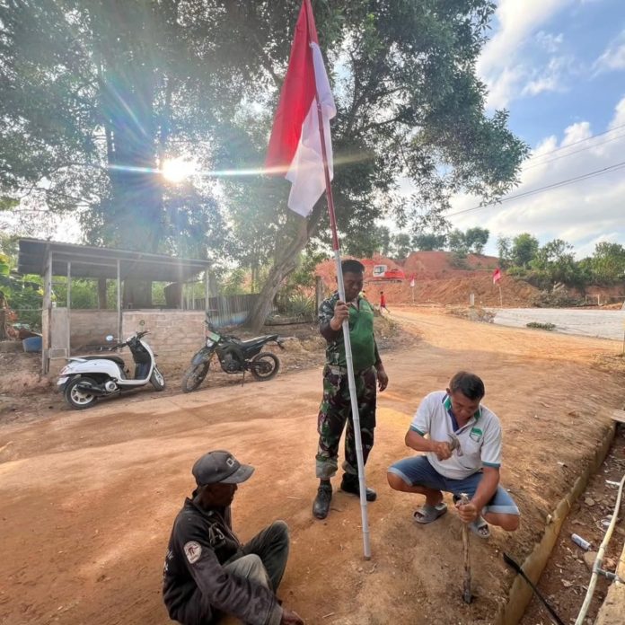 Batam – Sempurna memperingati Hari Kemerdekaan Republik Indonesia ke-80 pada 17 Agustus 2024, Satgas TNI Manunggal Membangun Desa (TMMD) ke-125 dari Kodim 0316/Batam bersama warga Kavling Sambau IV, Kelurahan Sambau, Kecamatan Nongsa, secara gotong royong menghias lingkungan mereka dengan bendera Merah Putih dan umbul-umbul, Minggu (3/8/2025).