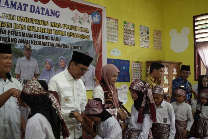 Bursakota.co.id, Lima Puluh Kota – Peresmian gedung baru Unit Pelaksana Teknis Daerah (UPTD) SDN 03 Talang Anau berlangsung meriah, meski hujan lebat mengguyur Nagari Talang Anau, Kecamatan Gunuang Omeh, Rabu (17/1/2023) pagi.