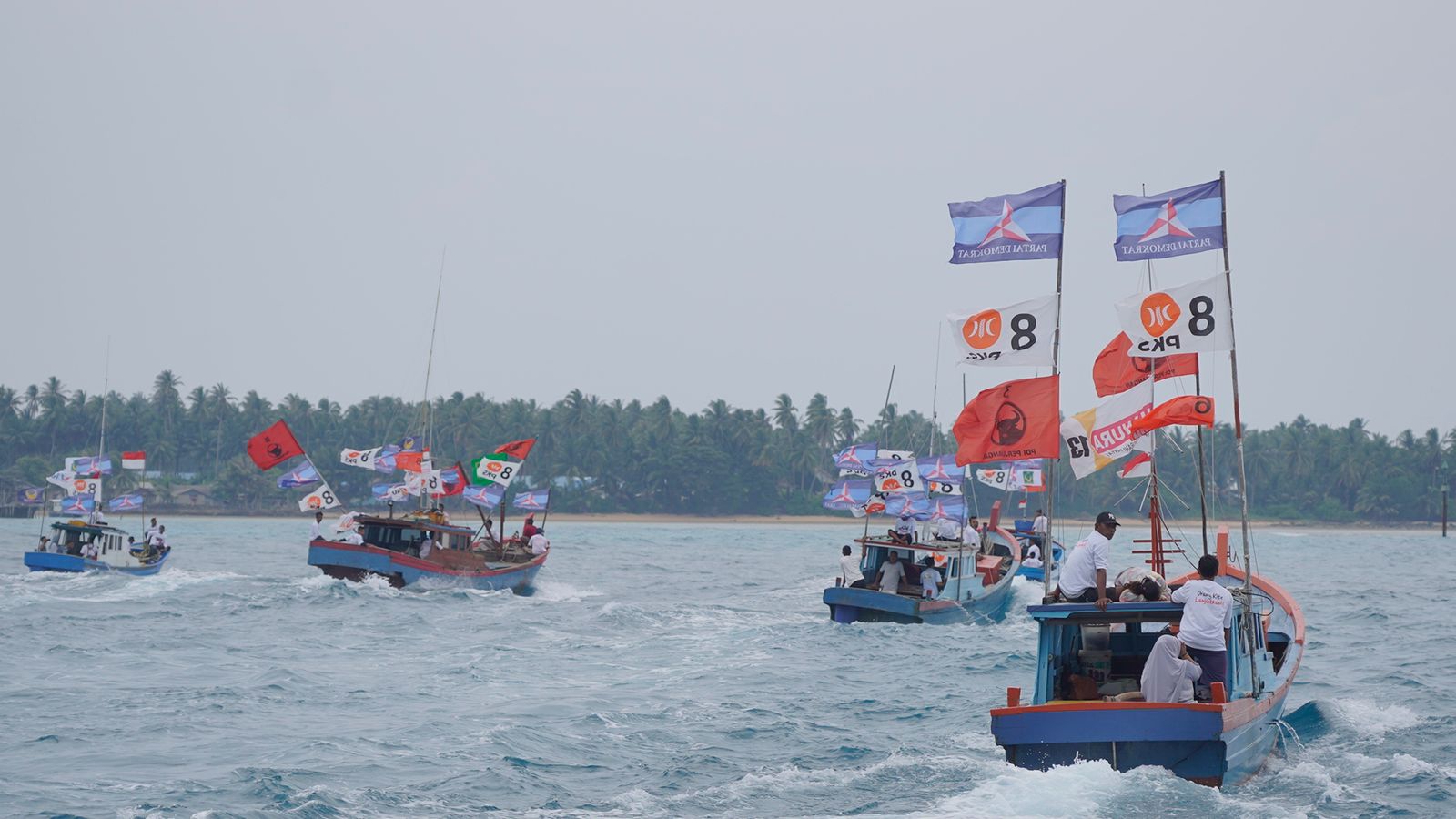 Para nelayan dengan bangga menunjukkan dukungan mereka, menambah suasana semarak yang melibatkan seluruh lapisan masyarakat.