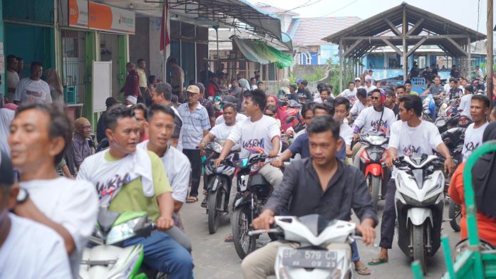 Terlihat masyarakat dari berbagai usia, membawa atribut dan spanduk sambil meneriakkan yel-yel dukungan untuk Wan Siswandi dan Rodhial Huda.