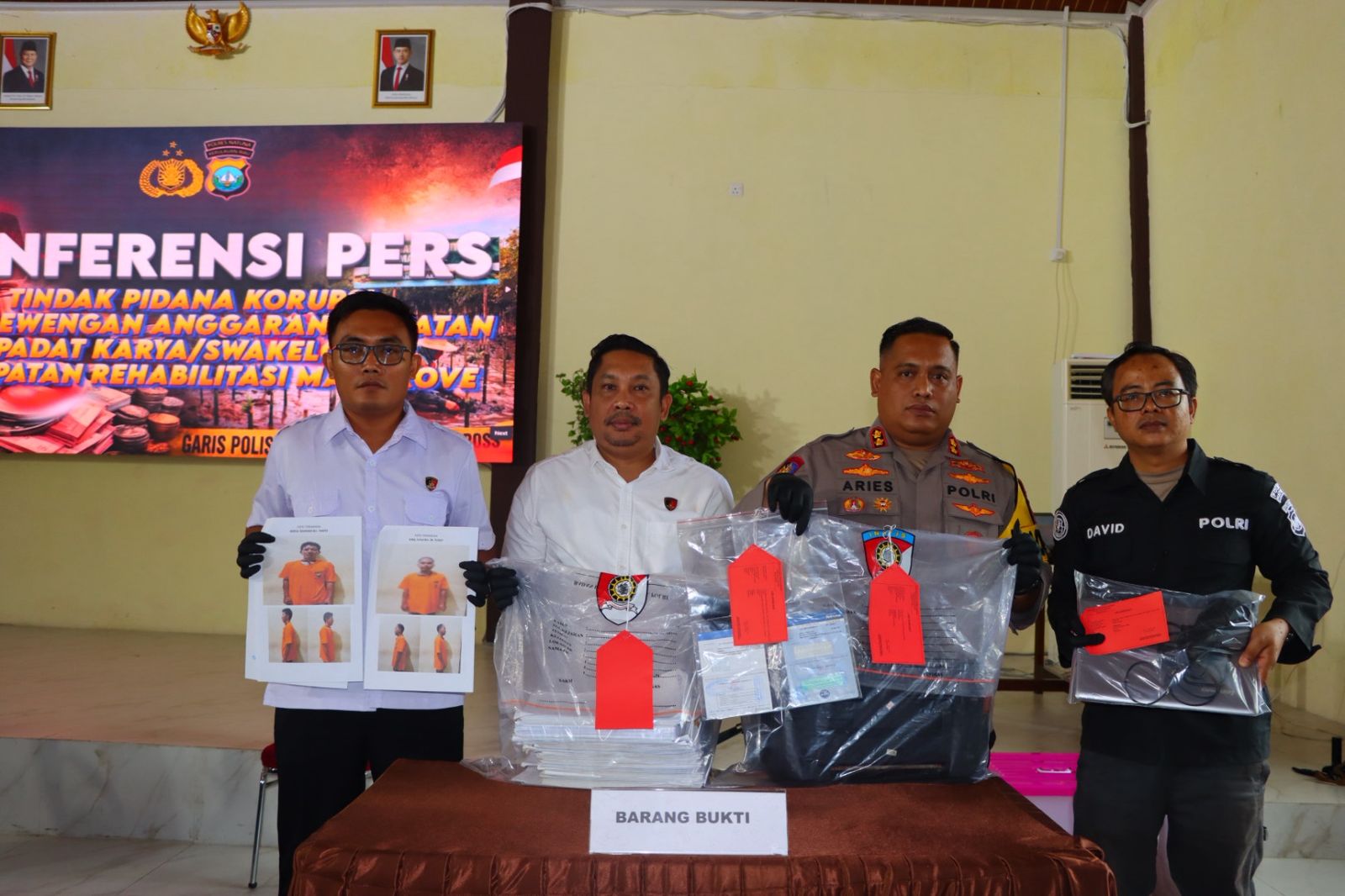 Kapolres menjelaskan, kasus ini bermula dari kegiatan Padat Karya/Swakelola Percepatan Rehabilitasi Mangrove yang didanai oleh Badan Restorasi Gambut dan Mangrove (BRGM) di Desa Pian Tengah, Kecamatan Bunguran Barat, Kabupaten Natuna.