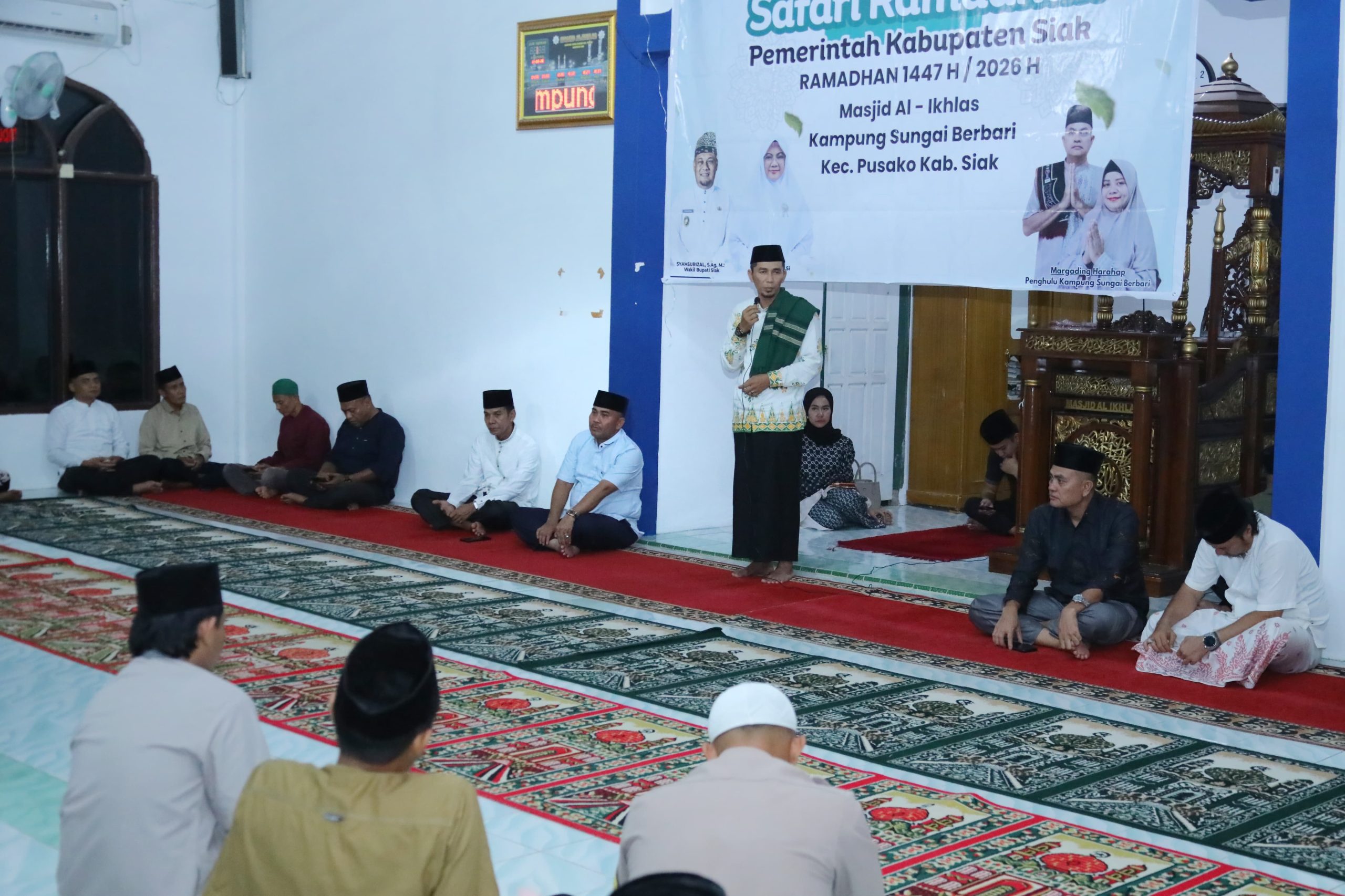 Hal tersebut disampaikan oleh Sekretaris Daerah Kabupaten Siak Mahadar, yang mewakili Bupati Siak Afni saat melaksanakan kegiatan Safari Ramadan Pemerintah Kabupaten Siak, di Masjid Al-Ikhlas, Kampung Sungai Berbari, Kecamatan Pusako, Rabu (11/3/2026).