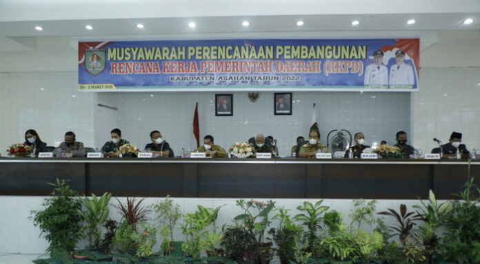 Bursakota.co.id, Asahan – Pemerintah Kabupaten Asahan menggelar Musyawarah Perencanaan Pembangunan (Musrenbang) dalam rangka penyusunan Rencana Kerja Pemerintah Daerah (RKPD) Di Aula Melati Kantor Bupati Asahan Tahun 2022 pada Selasa, (30/03/2021).