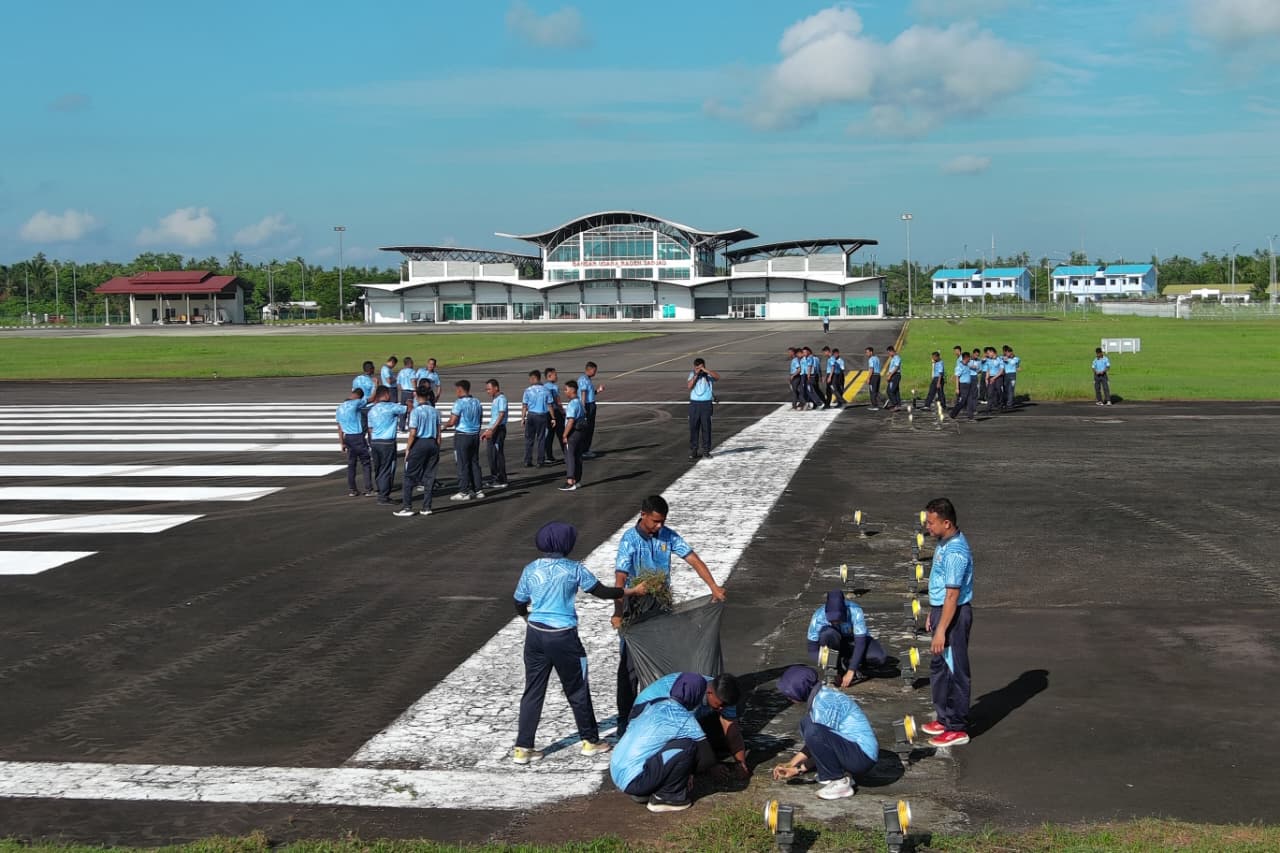 Danlanal RSA menekankan pentingnya melaksanakan pembersihan dengan baik dan penuh tanggung jawab, karena kebersihan area landasan pacu menjadi faktor utama dalam keselamatan penerbangan.