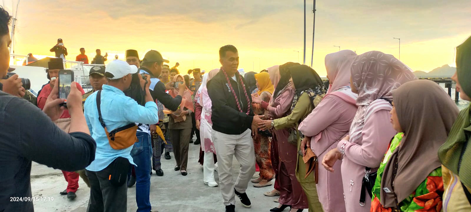 Ketangguhan Bupati Natuna menuju Serasan juga berbanding lurus dengan antusias masyarakat. Tiba di pelabuhan PLBN Serasan Bupati disambut ratusan warga.