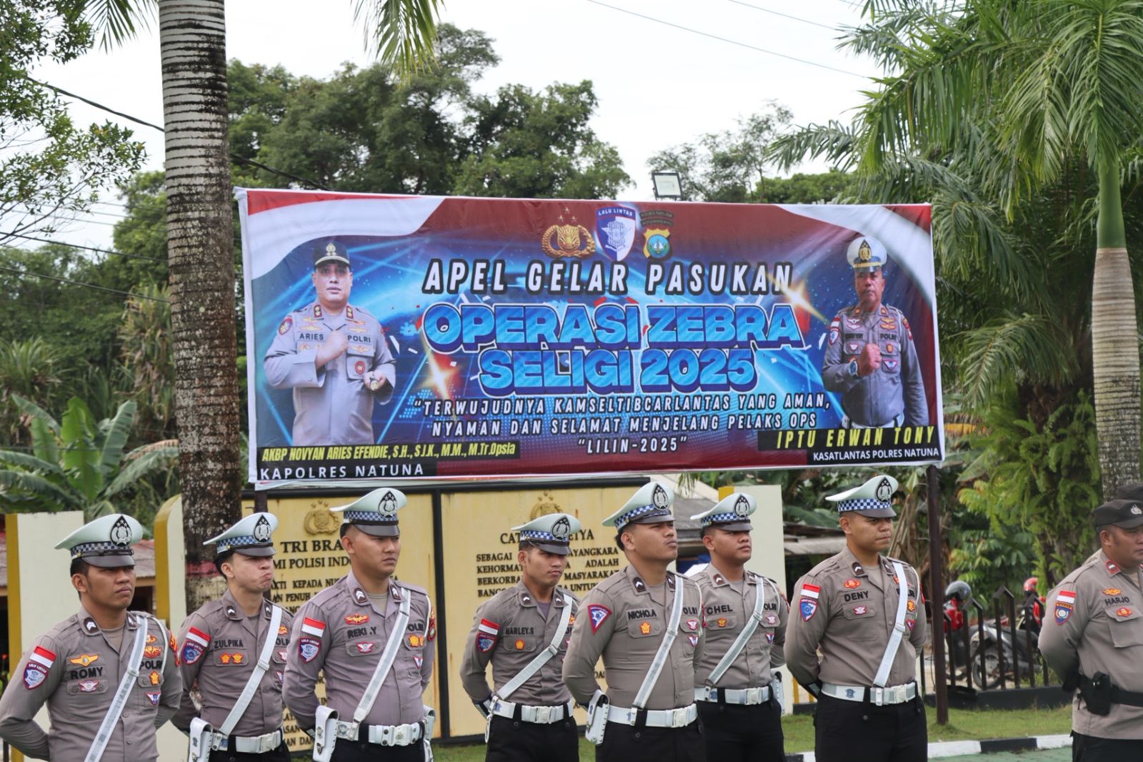 Natuna – Kepolisian Resor (Polres) Natuna menggelar Apel Gelar Pasukan Operasi Zebra – Seligi Tahun 2025 di Lapangan Bhayangkara Polres Natuna, Senin (17/11/2025).