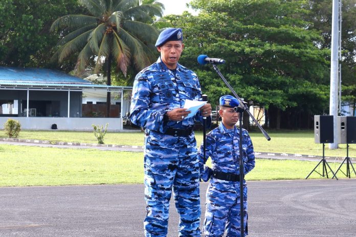 Natuna – Seluruh personel Pangkalan TNI AU Raden Sadjad (Lanud RSA) Natuna melaksanakan Upacara Bendera 17-an di Main Apron Lanud RSA, Kabupaten Natuna, Provinsi Kepulauan Riau, Kamis (17/4/2025). Upacara ini diikuti oleh personel Lanud RSA, Skadron Udara 52, Satrad 212 Ranai dan Denhanud 477 Kopasgat.