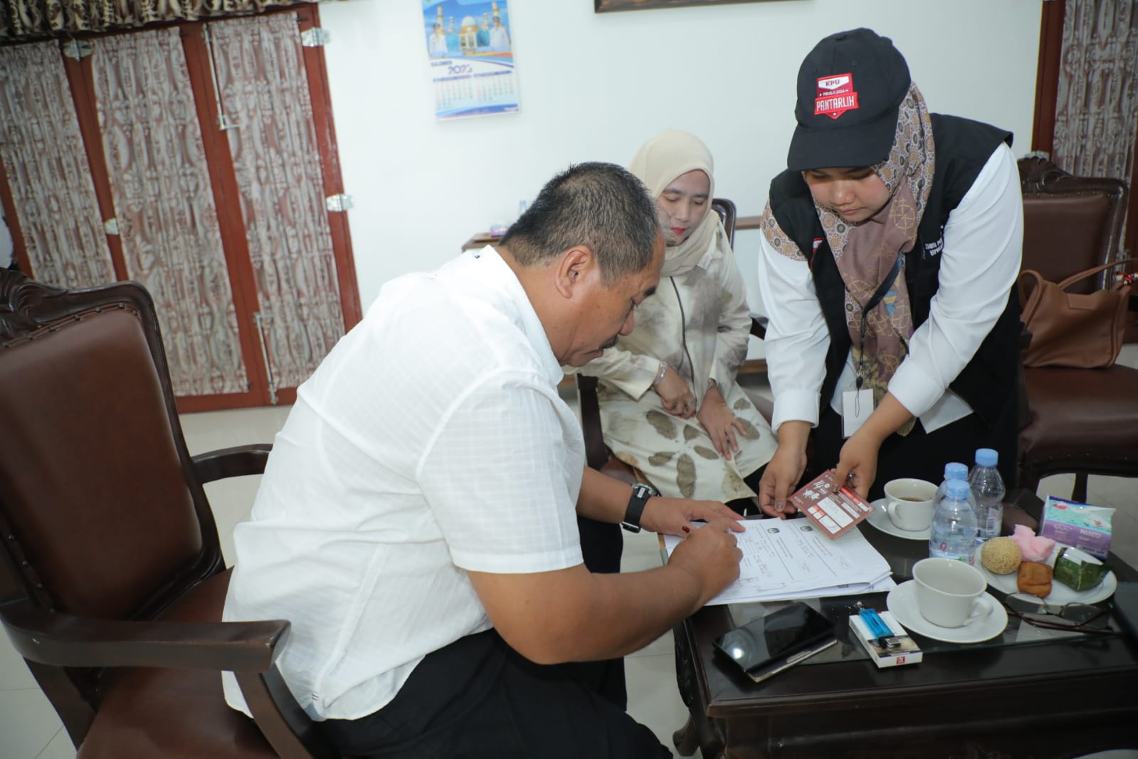 Bursakota.co.id, Asahan – Petugas Pemutakhiran Data Pemilih (Pantarlih) TPS 15 Kelurahan Selawan Kecamata Kota Kisaran Timur didampingi PPS Kelurahan Selawan, PPK Kota Kisaran Timur dan Panwaslu Kelurahan Selawan melakukan coklit data pemilu kepada Wakil Bupati Asahan Taufik Zainal Abidin Siregar, S. Sos, M. Si beserta keluarga. Coklit tersebut dilakukan di Rumah Dinas Wakil Bupati Asahan di Kelurahan Mekar Baru Kecamatan Kota Kisaran Barat, Rabu (22/02/2023).