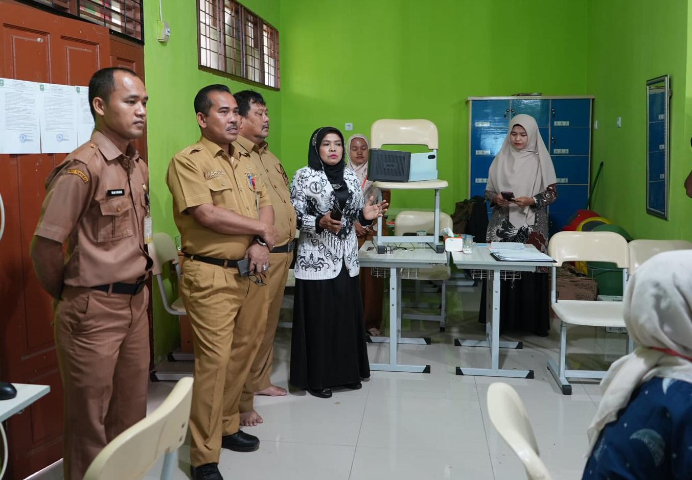 FOTO : Sekretaris Daerah Kabupaten Siak, Mahadar, melakukan peninjauan langsung pelaksanaan Tes Kemampuan Akademik (TKA) di SMPN 1 Mempura pada Selasa (7/4/2026).