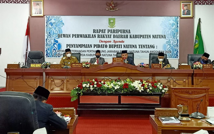 Rapat Paripurna LKPJ Bupati Natuna tahun anggaran 2020 dipimpin langsung oleh Ketua DPRD Daeng Amhar, dihadiri Wakil Ketua I Daeng Ganda Rahmatullah, Wakil Ketua II Jarmin Sidik dan anggota, serta FKPD dan OPD. (Advetorial)