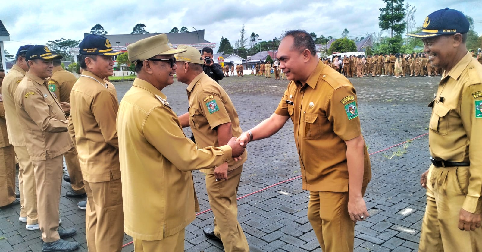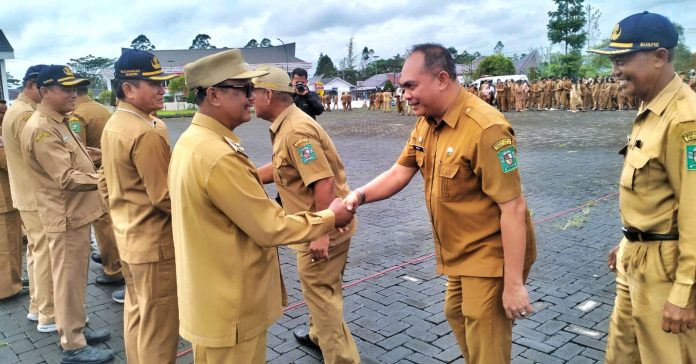 Bursakota.co.id, Simalungun – Dalam rangka penegakan disiplin Aparatur Sipil Negara (ASN) dan Optimalisasi Pelayanan Publik pasca Libur Nasional Tahun Baru 2025, ASN di Lingkungan Pemerintah Kabupaten (Pemkab) menggelar apel gabungan. Apel berlangsung di lapangan Kantor Bupati Simalungun, Pamatang Raya Kecamatan Raya, Sumut, Senin,(06/01/2025).